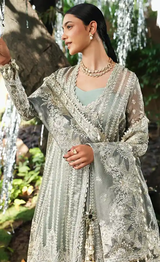 - Dusty Grey Viscose Zari Embroidered Front Open Border 2.60 M