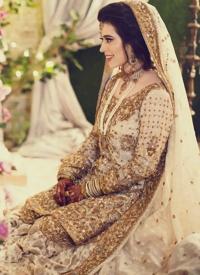 Homepage » Bridal Lehenga » Golden Nikkah Gharara